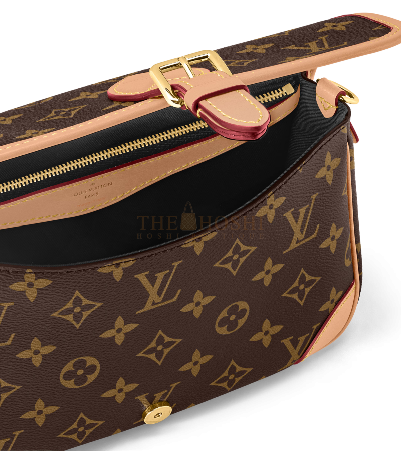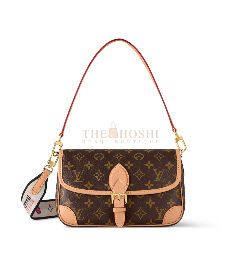 M45985 apricot, this DIANE handbag is equipped with a leather shoulder strap (can be carried under the armpit) and an embroidered shoulder strap (can be carried over the shoulder diagonally) are removable. Capacity for daily use enough to load the largest mobile phone without pressure, belt buckle is decorative in fact is a magnet to open and close is quite convenient ~ the middle of the compartment, easy to organise things, there is also a zip area, you can put some valuables. Size: 25.0 × 9.0 × 15.0CM (L × W × H)