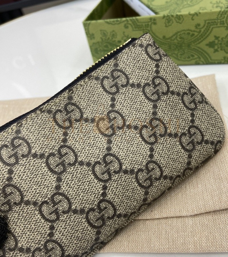 GUCCI GG EMBLEM WRISTLET CARD CASE BEIGE/BROWN CANVAS LEATHER 12X7.5CM MASTER QUALITY
